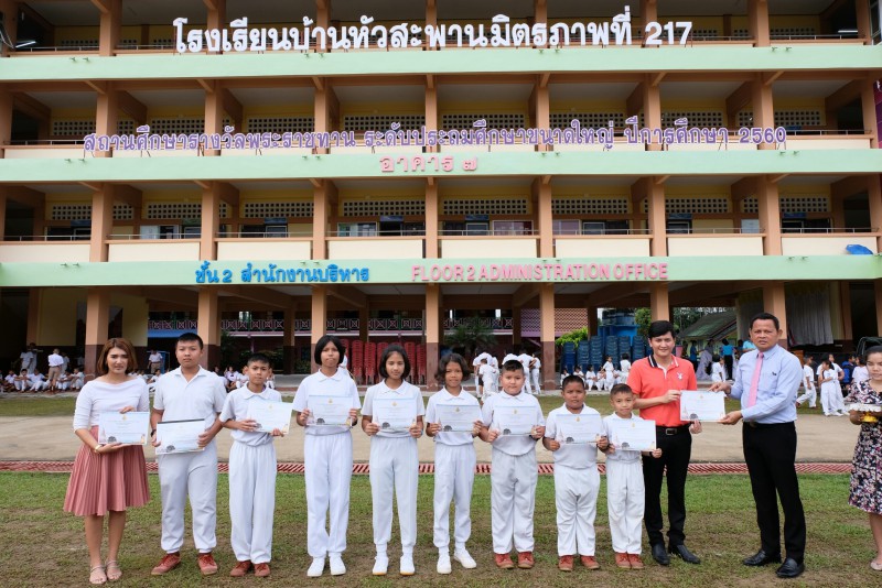 นายแสนสุข ชัยสวัสดิ์ ผู้อำนวยการโรงเรียนบ้านหัวสะพานมิตรภาพที่ 217 มอบเกียรติบัตรการแข่งขันงานมหกรรมความสามารถทางศิลปหัตถกรรม วิชาการ เทคโนโลยีของนักเรียน ระดับเขตพื้นที่ ปีการศึกษา 2561